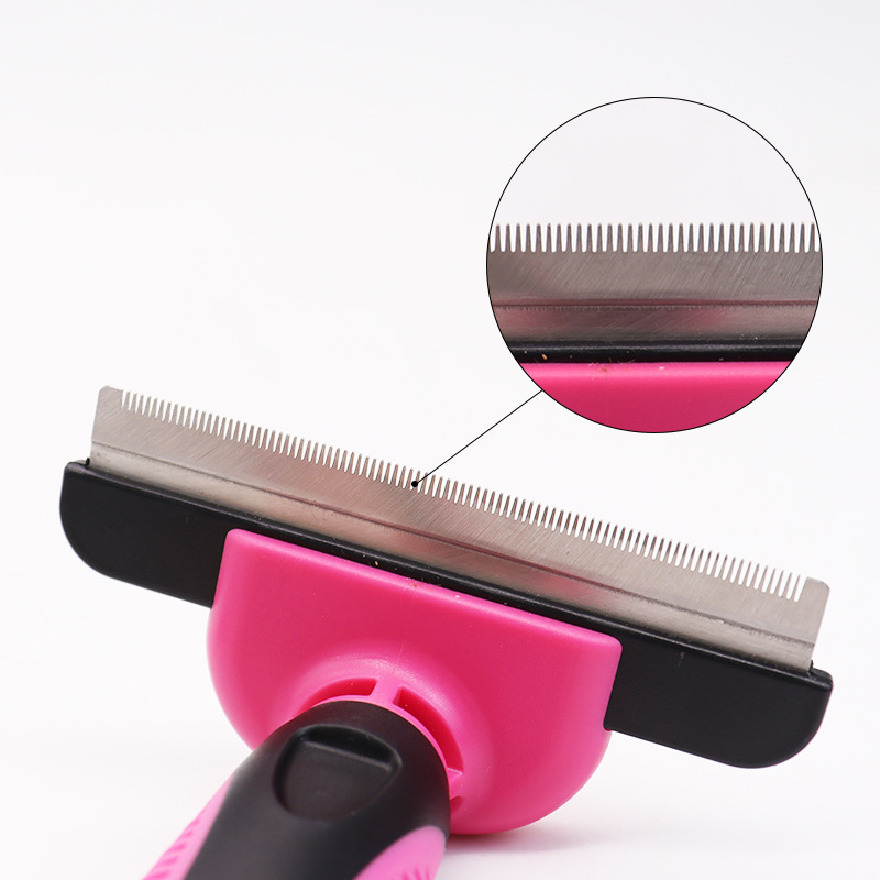 Этот расческа для ухода за домашними животными Изогнутое лезвие обеспечивает комфорт, V-образные зубья удаляют 95% шерсти, а корпус изготовлен из нержавеющей стали и АБС-пластика. Противоскользящая ручка обеспечивает удобство использования. Доступно в двух размерах и четырёх цветах (голубой, тёмно-синий, розовый, оранжевый) для вашего питомца.